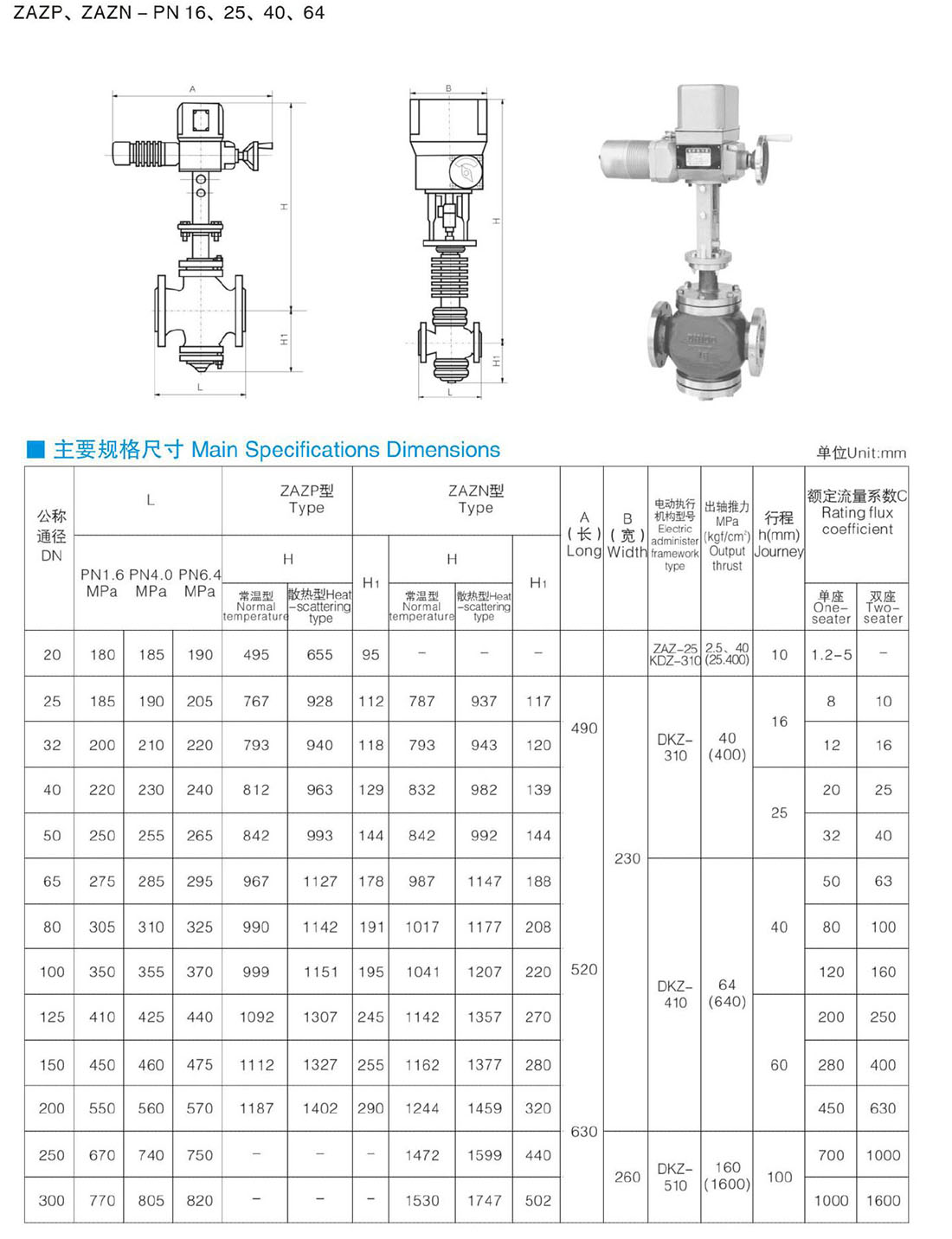 ZAZP、ZAZN -PN 16、25、40、64 電動調(diào)節(jié)閥