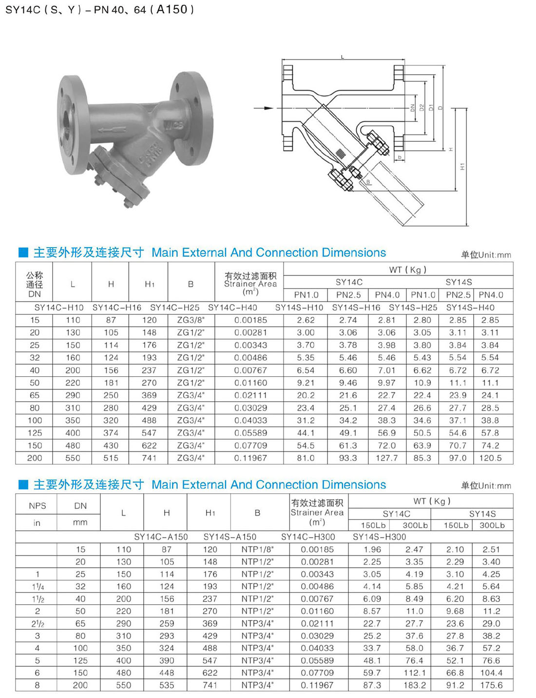 SY14C(S、Y)-PN40、64(A150) Y型過濾器