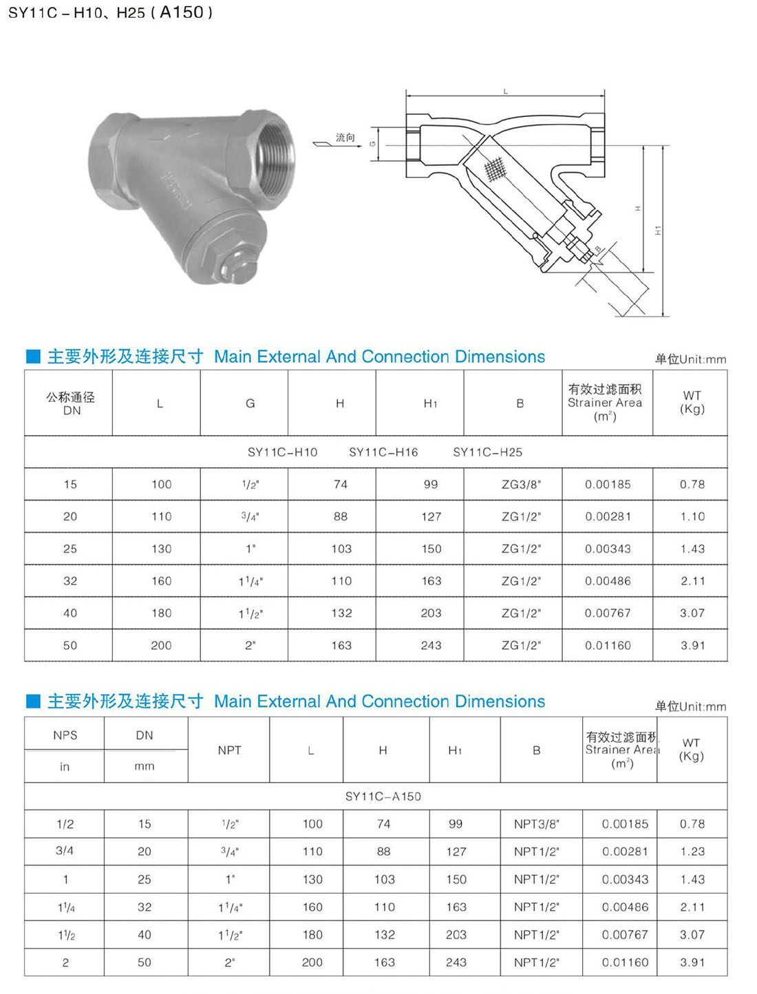SY11C _H10、H25(A150) Y型過濾器