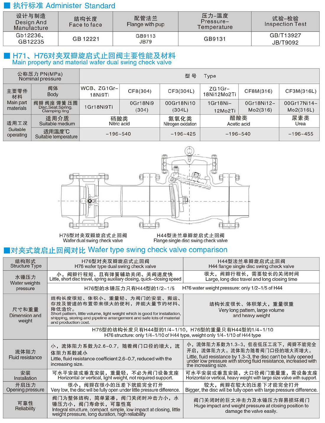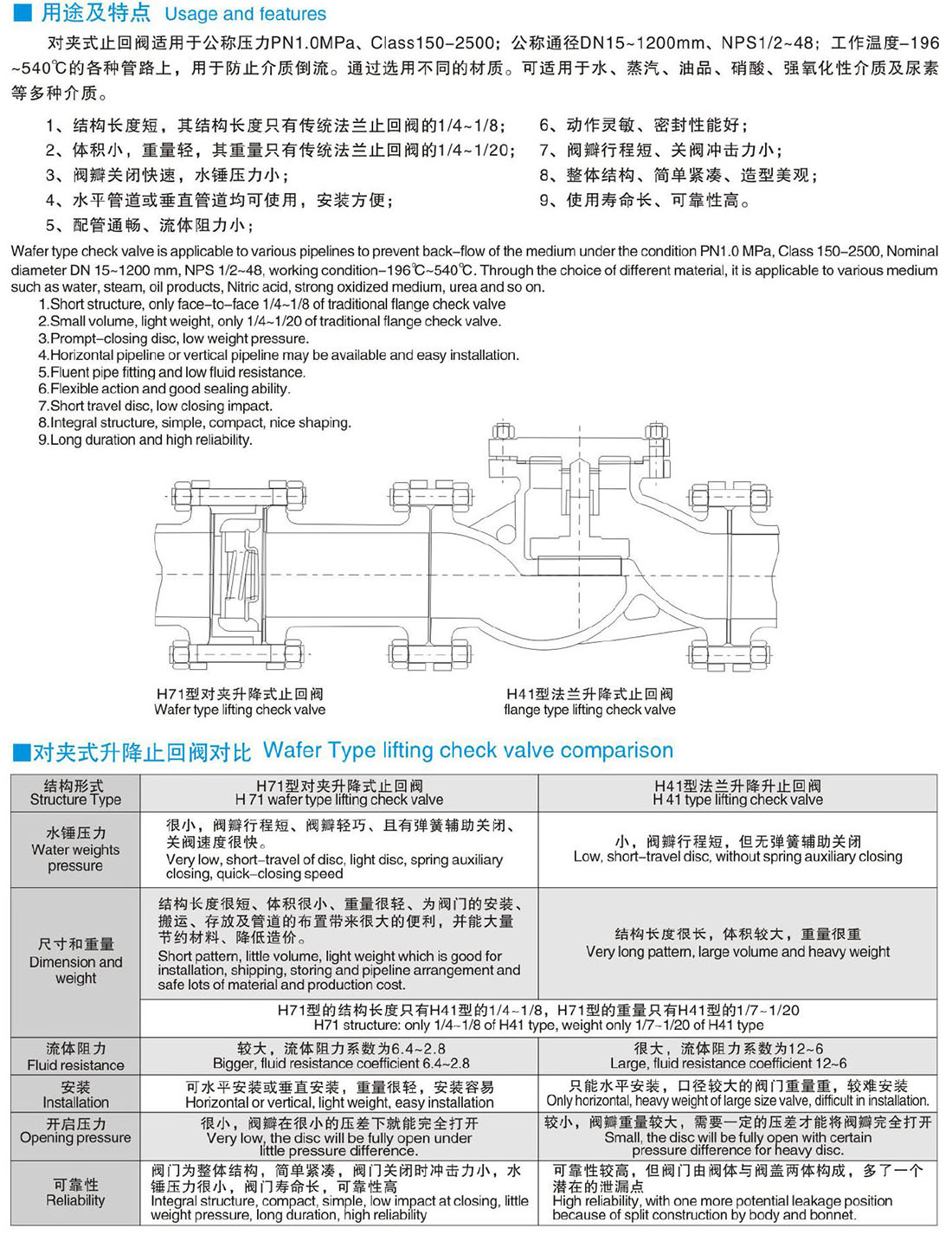 H71 (H, Y, W, F, N) - PN 10, 16, 25, 40 wafer type flange check valve