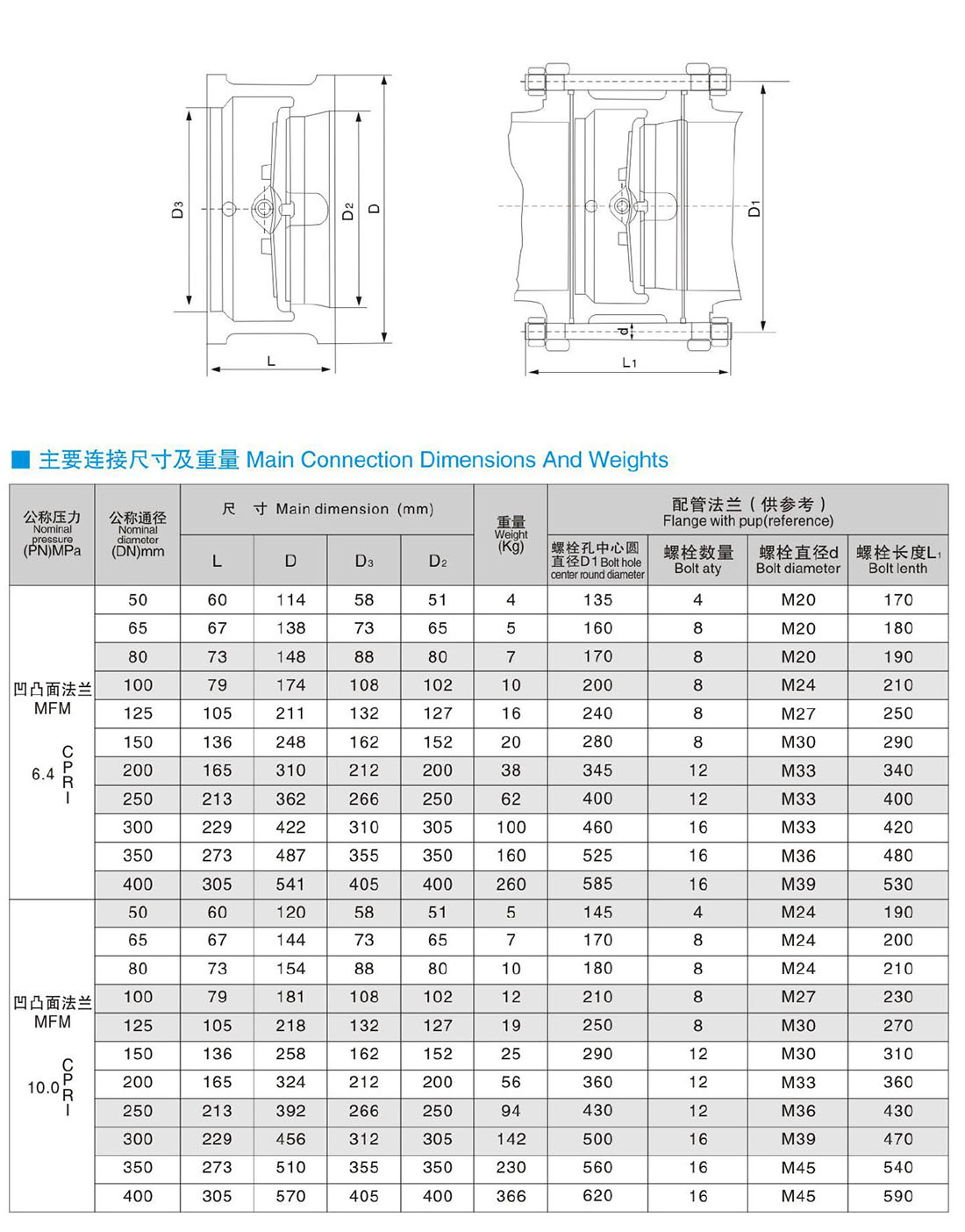 H76 (H, Y, W, F, N) - PN 64, 100 wafer butterfly check valve
